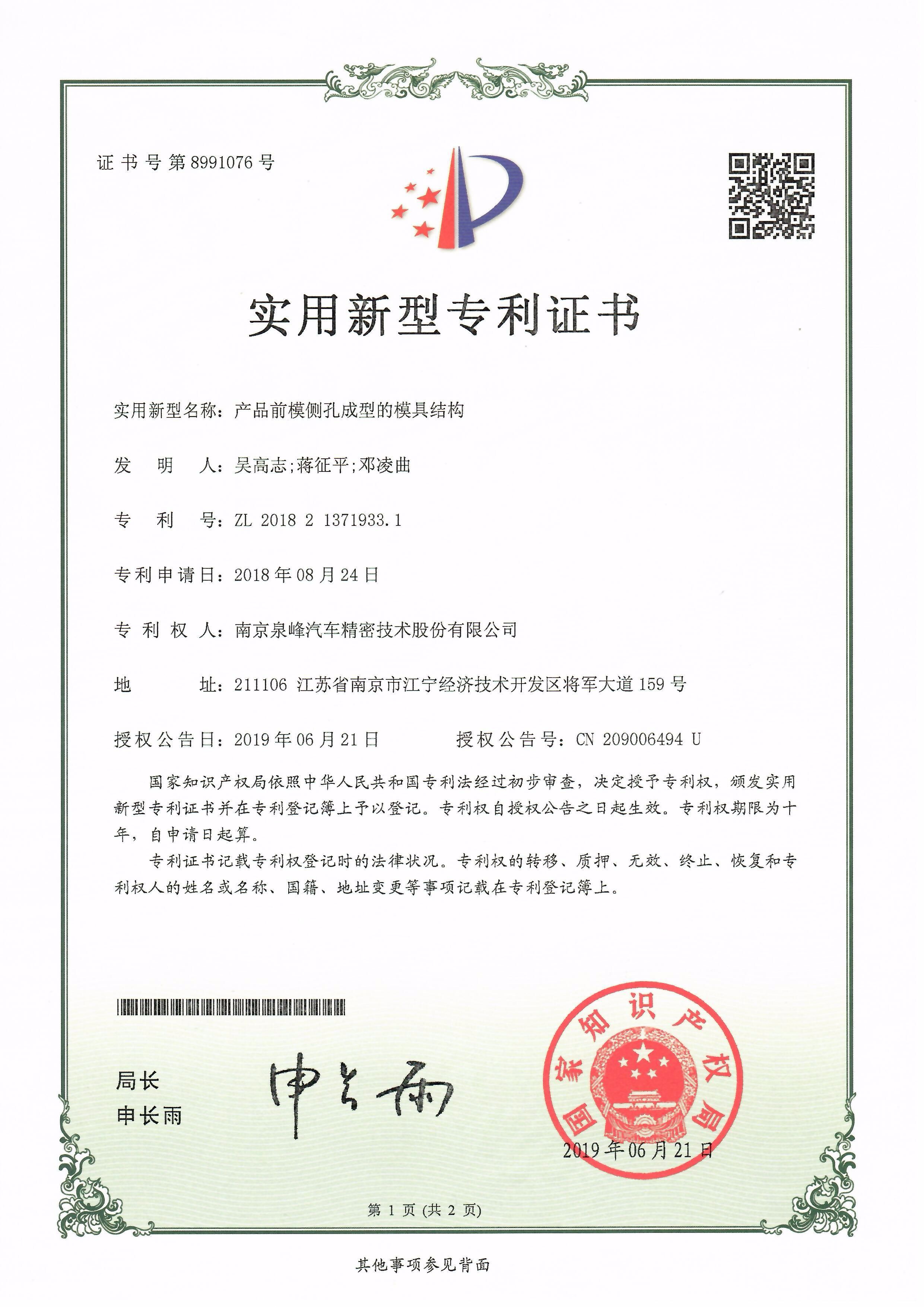 授權(quán)公告日:2019年06月11日